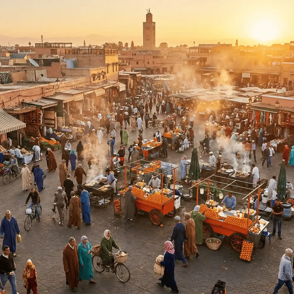 8:30 AM – Jemaa el-Fna Square Start at the beating heart of Marrakech: Jemaa el-Fna. In the morning, the square is already alive with orange juice vendors, fortune tellers, and musicians. Take your time to soak in the atmosphere before the heat of the day sets in.